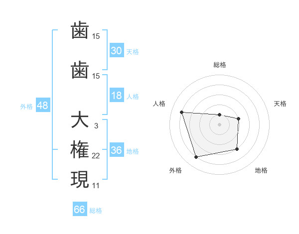 歯歯 大権現さんの総格は66画の1点!