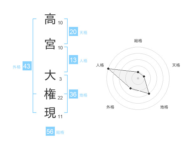 高宮 大権現さんの人格は13画の5点!