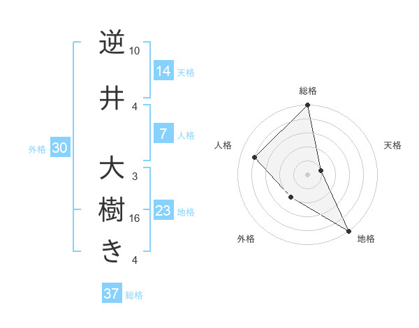 逆井 大樹きさんを姓名の画数から五運を鑑定