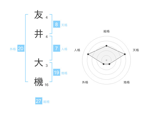 友井 大機さんの天格は8画の4点!