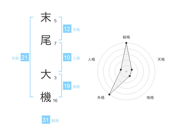 末尾 大機さんの外格は21画の5点!