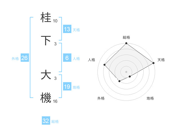 桂下 大機さんの総格は32画の5点!