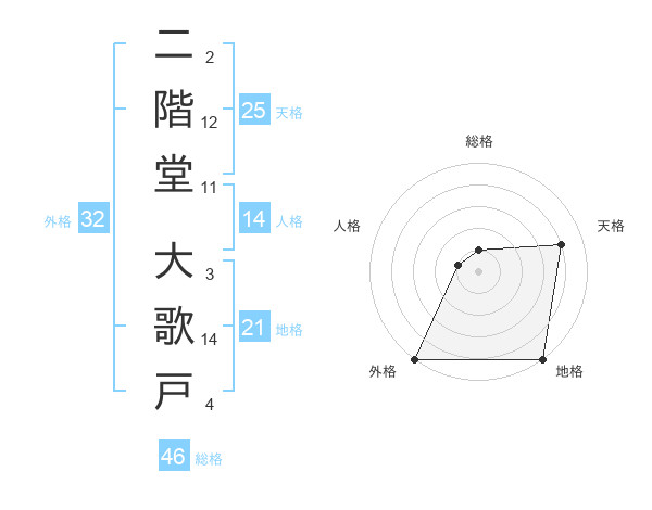 二階堂 大歌戸さんを姓名の画数から五運を鑑定