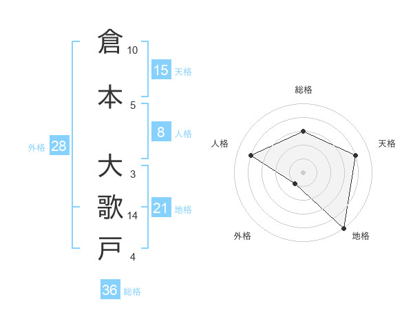 倉本 大歌戸さんの地格は21画の5点!