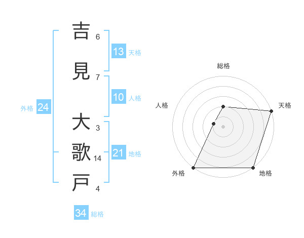 吉見 大歌戸さんの総格は34画の2点!