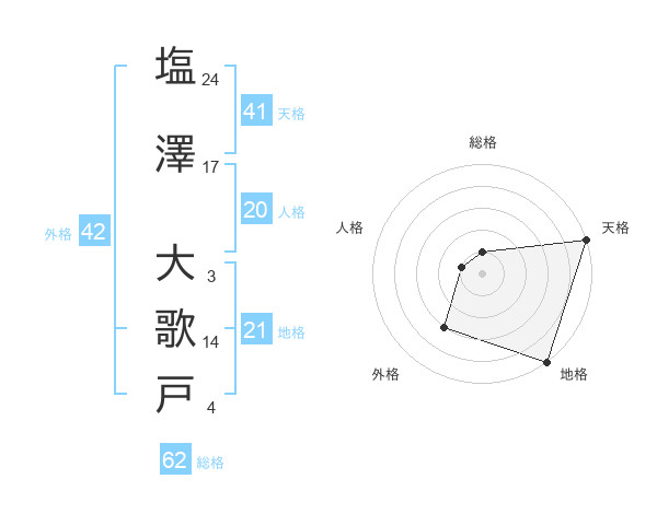 塩澤 大歌戸さんの地格は21画の5点!