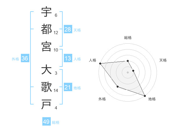 宇都宮 大歌戸さんを姓名の画数から五運を鑑定