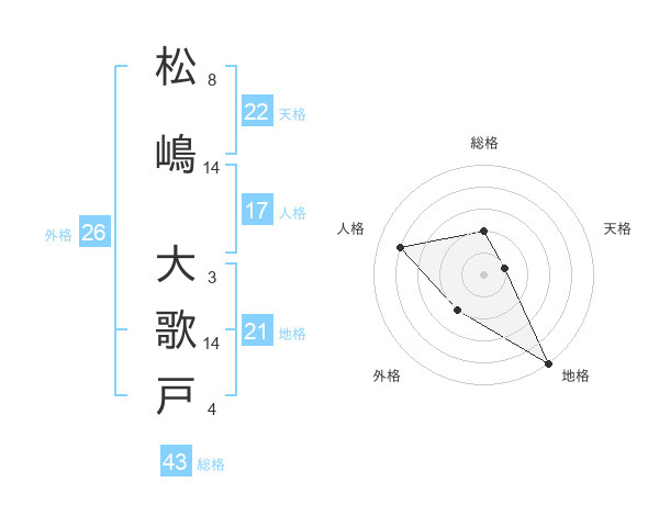 松嶋 大歌戸さんを姓名の画数から五運を鑑定