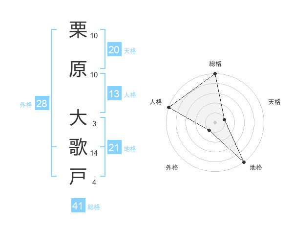 栗原 大歌戸さんの総格は41画の5点!