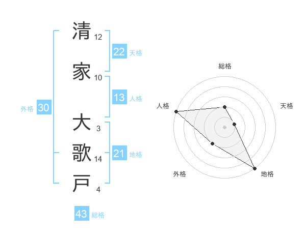 清家 大歌戸さんを姓名の画数から五運を鑑定