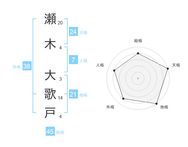 瀬木 大歌戸さんを姓名の画数から五運を鑑定
