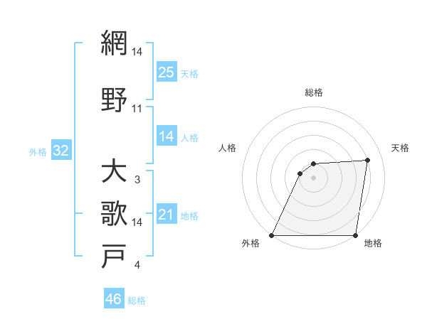 網野 大歌戸さんを姓名の画数から五運を鑑定