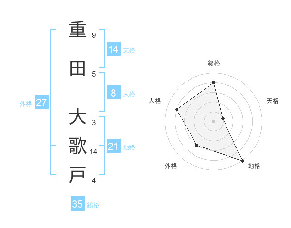 重田 大歌戸さんを姓名の画数から五運を鑑定