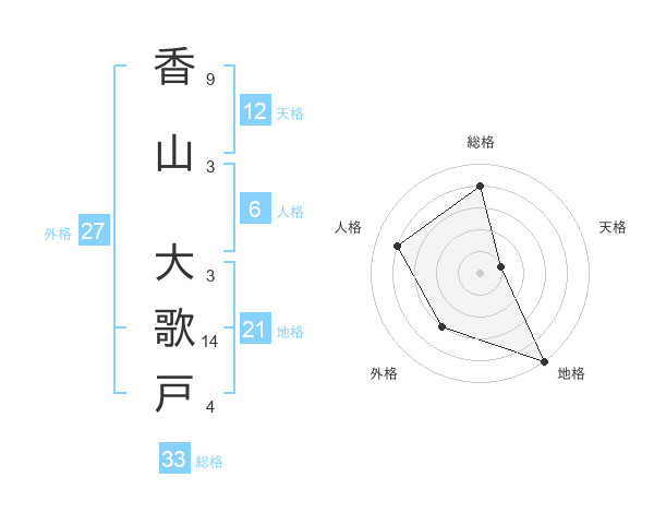 香山 大歌戸さんを姓名の画数から五運を鑑定
