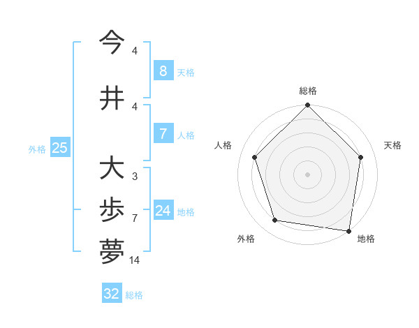 今井 大歩夢さんを姓名の画数から五運を鑑定