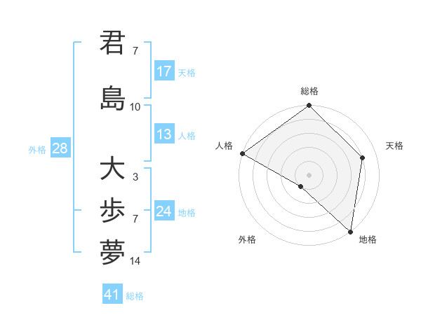 君島 大歩夢さんを姓名の画数から五運を鑑定