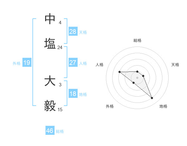 中塩 大毅さんの総格は46画の1点!