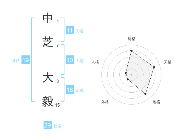中芝 大毅さんの総格は29画の4点!