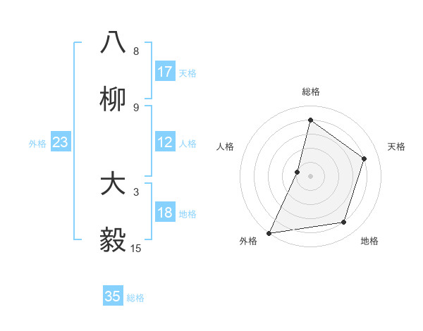 八柳 大毅さんの天格は17画の4点!