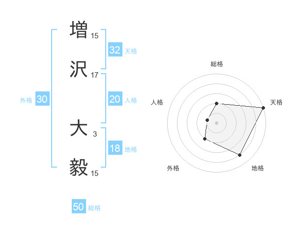 増沢 大毅さんの総格は50画の2点!