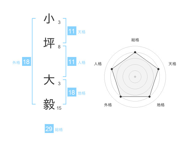 小坪 大毅さんの天格は11画の4点!
