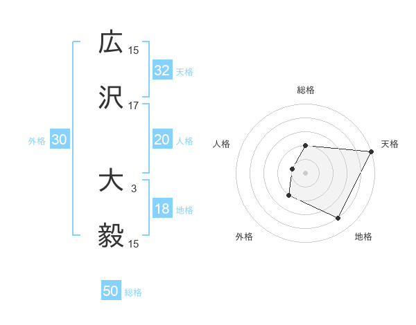 広沢 大毅さんの総格は50画の2点!