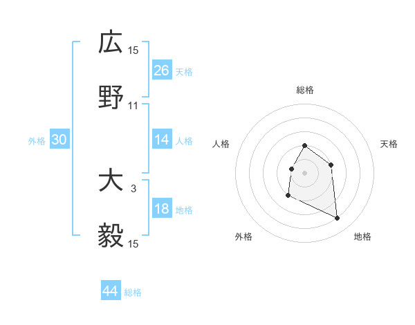 広野 大毅さんの総格は44画の2点!