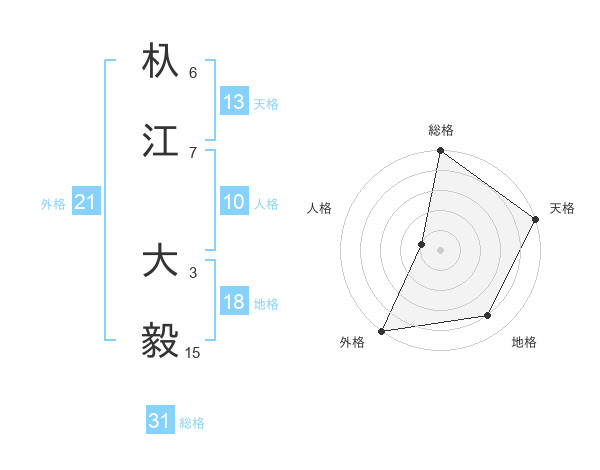 杁江 大毅さんの天格は13画の5点!