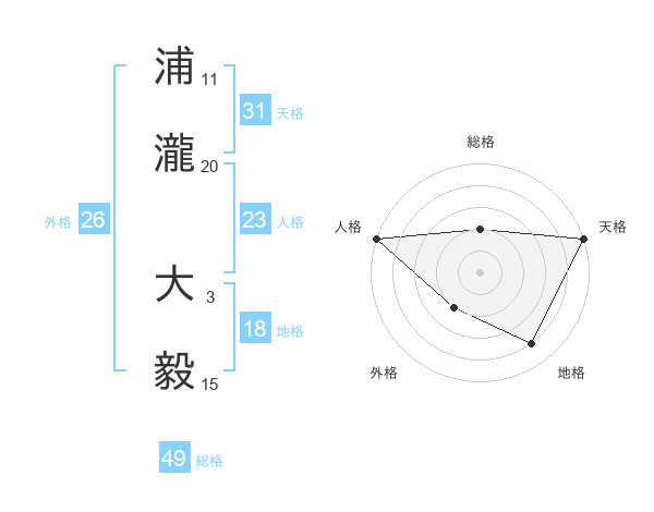 浦瀧 大毅さんを姓名の画数から五運を鑑定