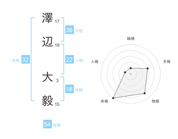 澤辺 大毅さんを姓名の画数から五運を鑑定