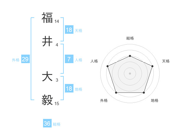 福井 大毅さんの天格は18画の4点!