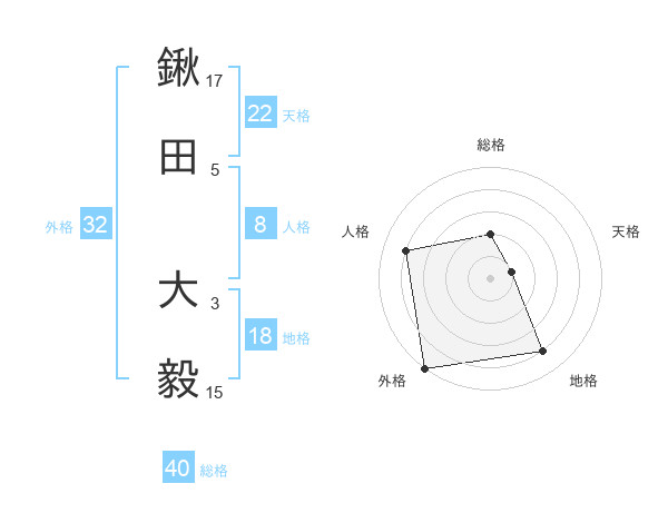 鍬田 大毅さんを姓名の画数から五運を鑑定