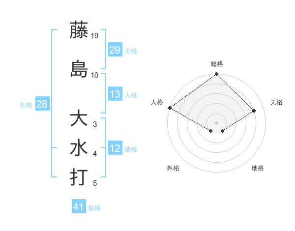 藤島 大水打さんの総格は41画の5点!