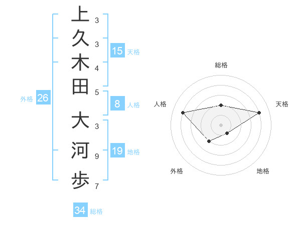 上久木田 大河歩さんを姓名の画数から五運を鑑定