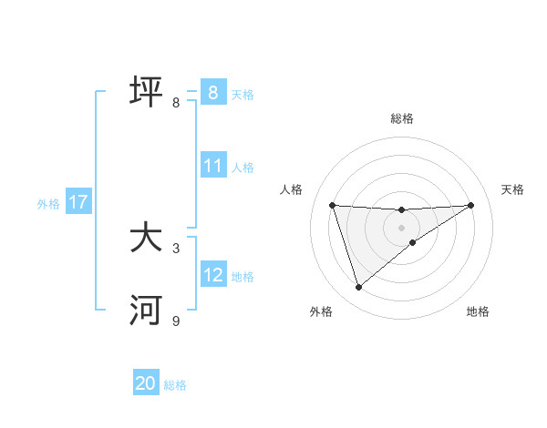 坪 大河さんを姓名の画数から五運を鑑定