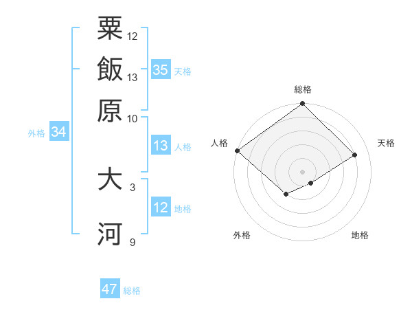 粟飯原 大河さんの総格は47画の5点!