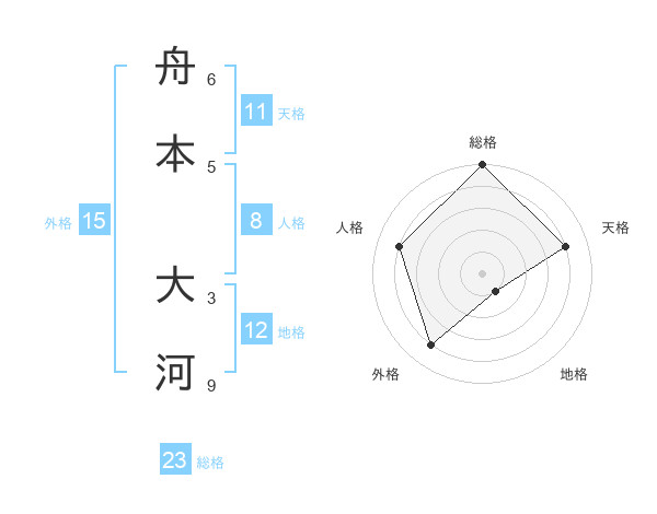 舟本 大河さんの総格は23画の5点!