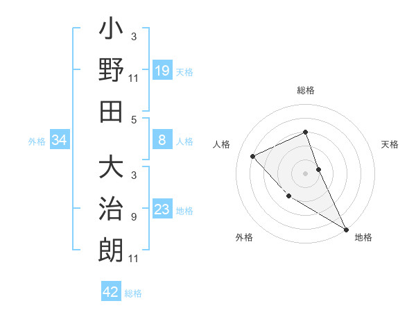 小野田 大治朗さんを姓名の画数から五運を鑑定