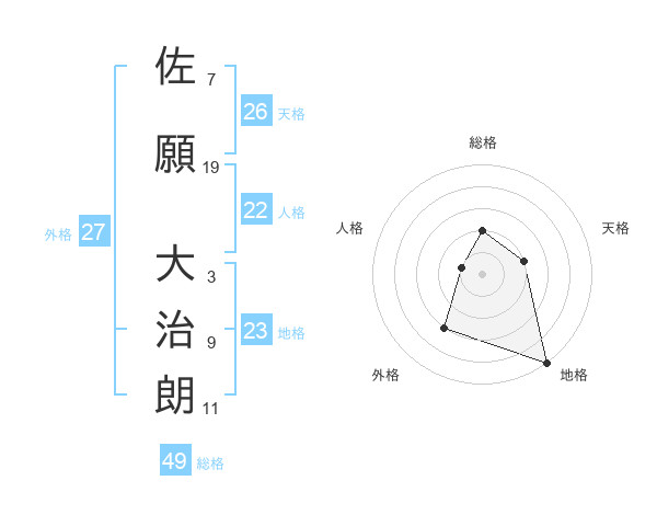 佐願 大治朗さんを姓名の画数から五運を鑑定