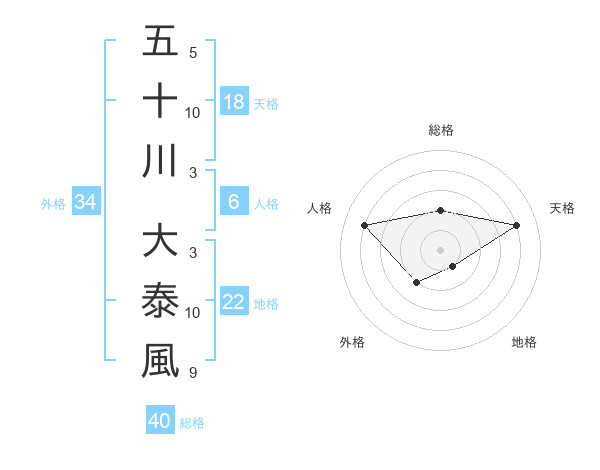 五十川 大泰風さんの総格は40画の2点