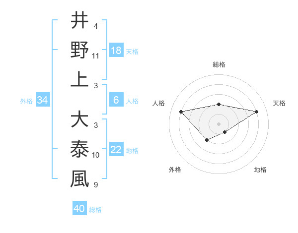 井野上 大泰風さんを姓名の画数から五運を鑑定
