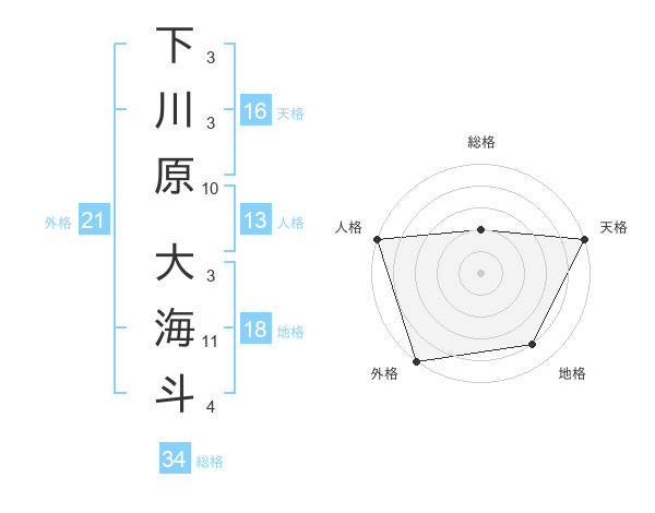 下川原 大海斗さんを姓名の画数から五運を鑑定