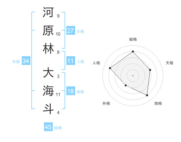 河原林 大海斗さんを姓名の画数から五運を鑑定