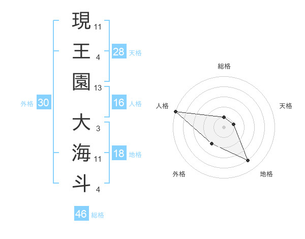 現王園 大海斗さんの天格は28画の1点!