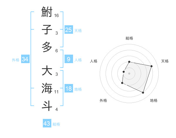 鮒子多 大海斗さんの外格は34画の2点!