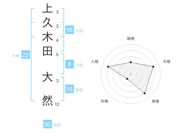 上久木田 大然さんを姓名の画数から五運を鑑定