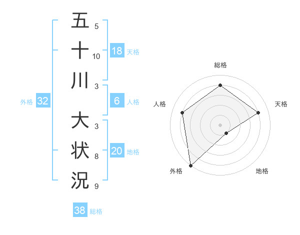 五十川 大状況さんを姓名の画数から五運を鑑定