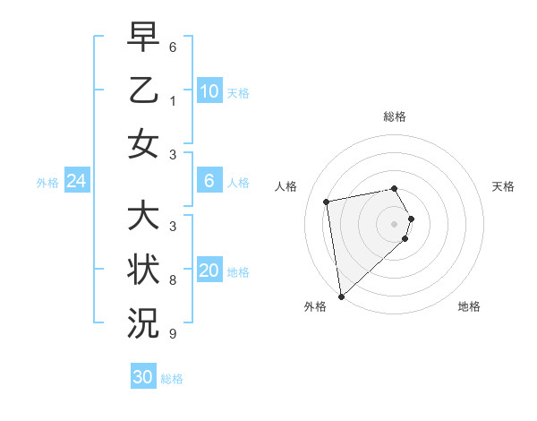 早乙女 大状況さんの総格は30画の2点!