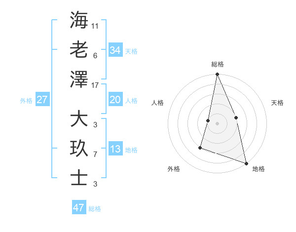 海老澤 大玖士さんを姓名の画数から五運を鑑定