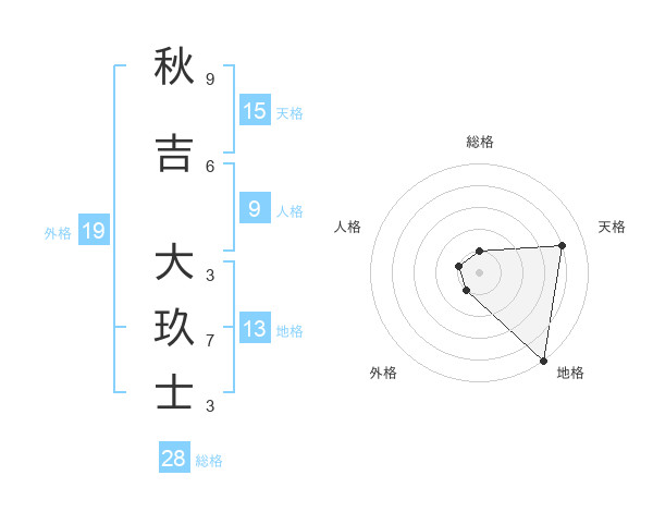 秋吉 大玖士さんを姓名の画数から五運を鑑定